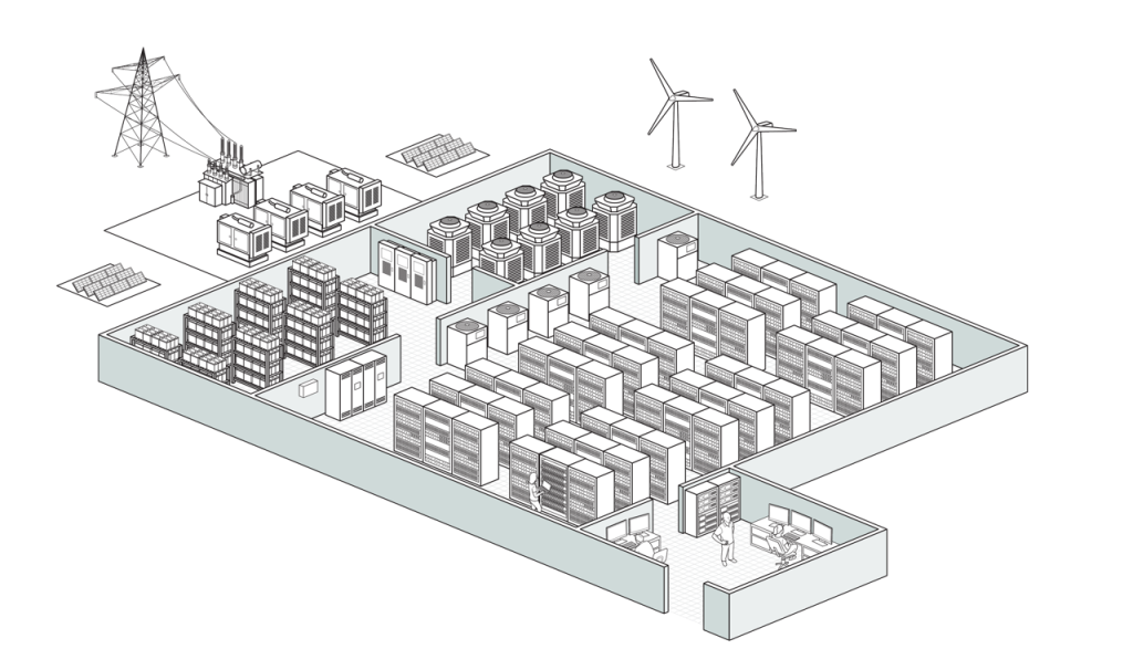 AI runs on large, often hyperscale, data centers that provide massive computing power, storage capacity, high-speed networking, and power and cooling infrastructure.